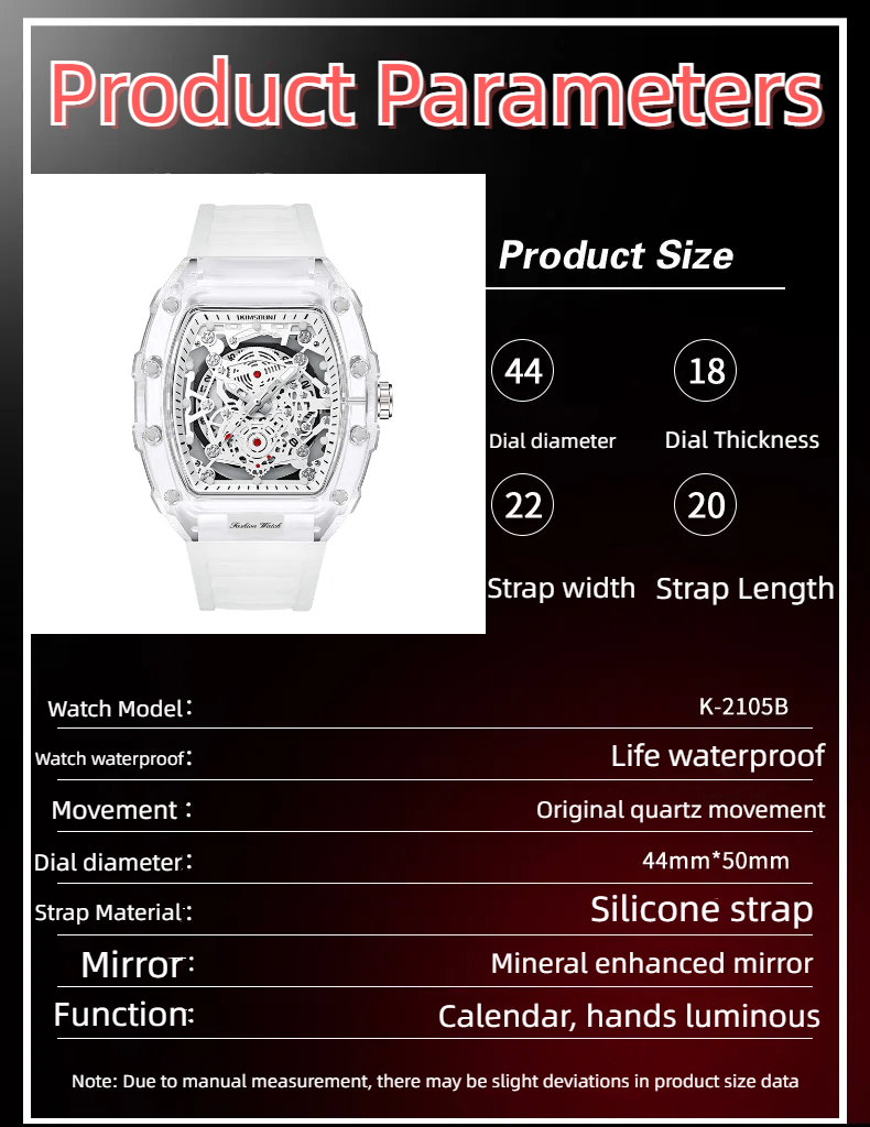New fashion luxury high quality transparent barrel watch